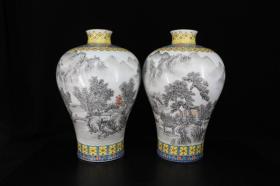 乾隆款珐琅彩墨彩山水画纹梅瓶一对 高 32厘米 宽20厘米