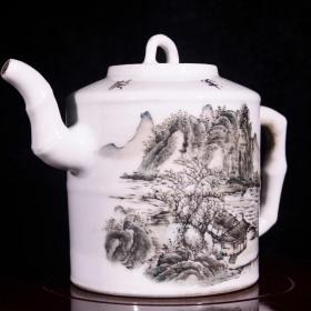 大清光绪浅绛彩墨彩粉彩山水纹酒壶茶壶