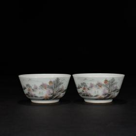 雍正官窑瓷器墨彩山水人物纹杯