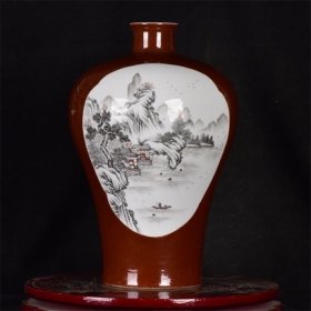 清乾隆年胭脂红墨彩山水纹爬花梅瓶38*25m3360¥