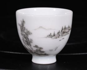 大清雍正年制粉彩墨彩山水纹云川款酒杯茶杯