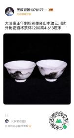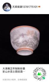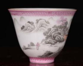 大清雍正年制粉彩墨彩山水高士图纹酒杯茶杯. 高5.2径5.6厘米1.