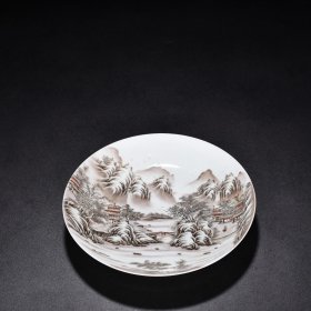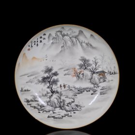 清乾隆墨彩山水纹盘 高3.5厘米