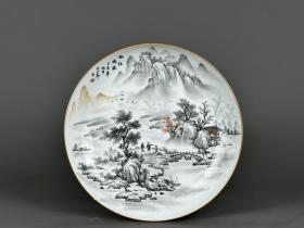 清乾隆墨彩山水纹盘 古玩古董古瓷器