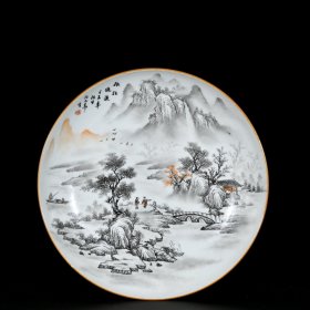 清乾隆墨彩山水纹盘 高3.5厘米 宽20.5厘米