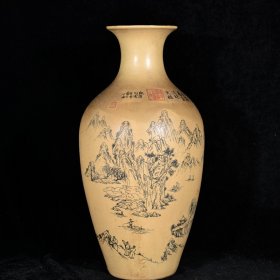 民,墨彩山水纹瓶 尺寸45Ⅹ22厘米。