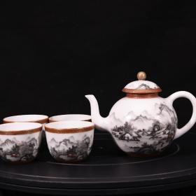 大清乾隆年制本色真金粉彩墨彩山水纹酒具茶具