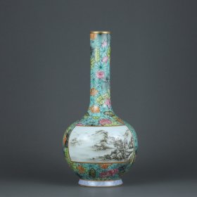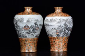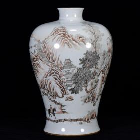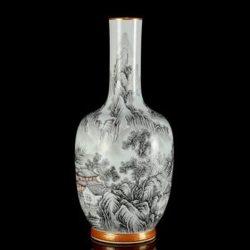 清乾隆年墨彩山水纹梅瓶30*20m