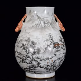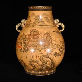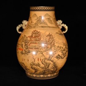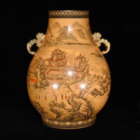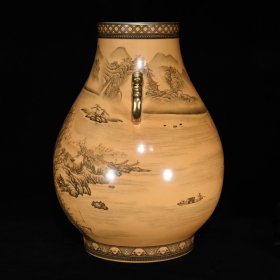 清乾隆墨彩山水纹如意耳尊48×37
