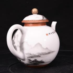大清乾隆年制粉彩描金墨彩山水纹酒壶茶壶