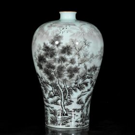 清雍正墨彩山水纹梅瓶25x16厘米