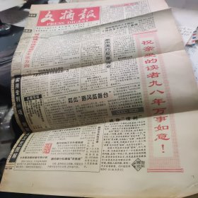 文摘报1998年1月1日一开大8开8页