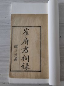 杭州地方珍贵古籍!清精刻崔府君祠录,一册全。 品美金镶玉装帧。 杭州地方珍贵古籍,清光绪四大藏书楼之一,丁氏八千卷楼精刻 一卷。清郑烺辑。郑烺,钱塘(今浙江杭州)人。崔府君者,名珏,字子玉,彭城人,隋、唐间任磁州刺史,颇以神道没教。自唐初已有庙祀,宋高宗南渡,传庙显白马之兆。又张皇后梦赎红羊而生孝宗,为更多求子嗣者所崇祀。 尺寸如图