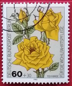 联邦德国邮票 西柏林 西德 1982年 发行量469万 社会福利基金附捐 花园玫瑰 提西杂交玫瑰 4-2 信销