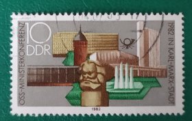 德国邮票 东德1982年社会主义国家邮电部长会议-马克思城新老建筑 纪念碑 1全销