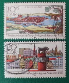 德国邮票 东德1982年第七届青少年邮展-建筑 2全销