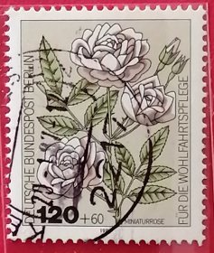 联邦德国邮票 西柏林 西德 1982年 发行量469万 社会福利基金附捐 花园玫瑰 小花玫瑰 4-4 信销