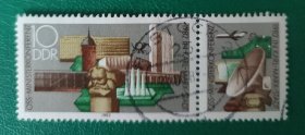 德国邮票 东德1982年社会主义国家邮电部长会议-马克思城新老建筑 纪念碑 1全销 带副票