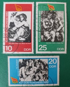 德国邮票 东德1982年自由工会联合会 绘画-母与子 革新小组 年轻夫妇 3全销