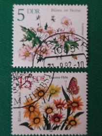 德国邮票 东德1982年秋季花卉 2枚销