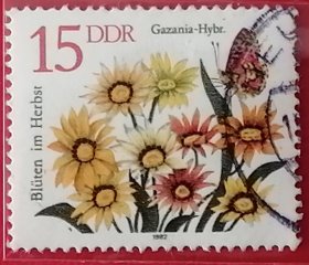 民主德国邮票 东德 1982年 发行量210万 秋季花卉 松叶菊 6-3 信销