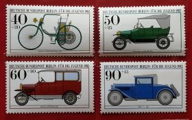 联邦德国邮票 西柏林 西德 1982年 发行量333万 青少年附捐邮票 老爷车 4全 全新