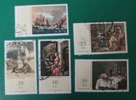 德国邮票 东德1982年国家博物馆藏画-5枚销