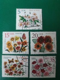 德国邮票 东德1982年秋季花卉 5枚销