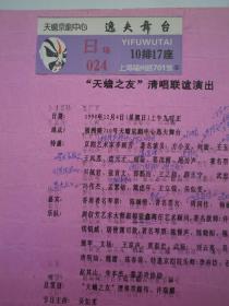 祝贺98上海国际艺术节隆重举行天蟾之友京剧演唱会 节目单 附门票一张 具体看图