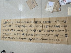 中国红色书画家协会副会长、中国书画艺术家协会理事、中国书法家协会会员、中国榜书协会会员 张忠伦(行书、未装裱、保真、有折叠痕迹、不影响装裱) 长137厘米,。宽68厘米:,