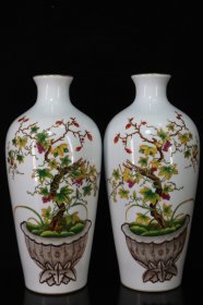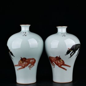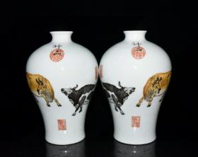 清乾隆郎世宁珐琅彩耕牛图梅瓶一对 20x13