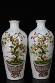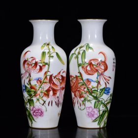 乾隆珐琅彩郎世宁西洋彩花卉纹赏瓶一对 宽10.6厘米高24厘米