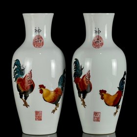 旧藏清乾隆本金珐琅彩郎世宁绘挂羊头卖狗肉纹对瓶规格23厘米宽11厘米