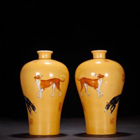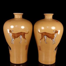 清乾隆郎世宁珐琅彩忠犬图梅瓶一对 20x13
