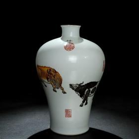 清乾隆郎世宁珐琅彩虎纹梅瓶