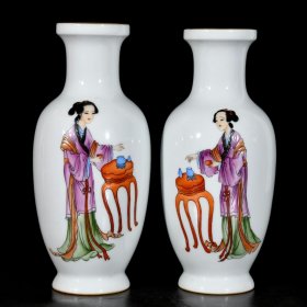 清乾隆郎世宁珐琅彩仕女图人物纹赏瓶一对