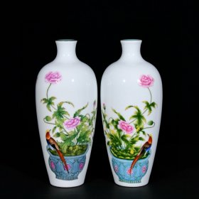 清乾隆郎世宁珐琅彩花鸟纹梅瓶一对