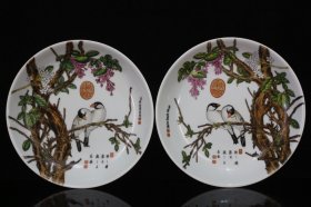乾隆珐琅彩郎世宁绘花鸟赏盘一对 宽21.2厘米高4.5厘米
