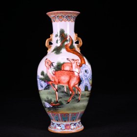 清乾隆本金珐琅彩郎世宁绘禄禄有福纹双耳赏瓶