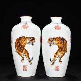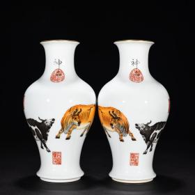 清乾隆郎世宁珐琅彩威虎纹赏瓶35/17 7790061678
