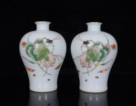 乾隆郎世宁绘珐琅彩蔬果飘香梅瓶一对;16x19.5;