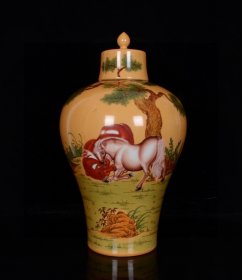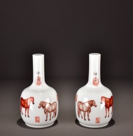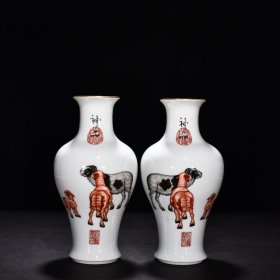 旧藏清乾隆郎世宁恭绘粉彩神骏图摇铃尊一对! 尺寸高24宽14 价1280