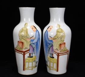 清乾隆郎世宁绘珐琅彩人物仕女图赏瓶;25x10.5;