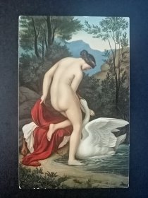 【S98老明信片】丽达与天鹅明信片,世界名画明信片,名人绘画油画艺术作品明信片,希腊神话故事明信片,1905年左右明信片,欧洲早期明信片,外国明信片,清代时期明信片
