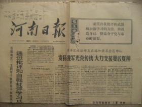 河南日报 1971年5月26日 第1269号 总7405号 第1-4版 省军区政治部发出通知要求全区部队发扬我军光荣传统大力支援夏收夏种 文艺创作不要受真人真事的局限 山东省沿黄河下游两岸引黄淤灌发展农业生产的经验 石油史上反帝斗争的新篇章 原版正版老报纸 可作生日庆生报即生日报 周年庆贺报 结婚纪念报等