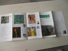 彩铜版美术插页海报(单张)油画七幅:曹达立《火山国》张祖英《岁月》汪志杰《圣墓前的女郎》朱乃正《归巢》葛鹏仁《宙》李秀实《金石梦语》杨飞云油画《侧面》,吕荣国画四幅《红叶》《荒村》等