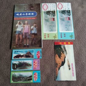 峨眉山导游图、峨眉山索道门票2枚、峨眉山(报国寺、伏虎寺、金顶)门票、峨眉山游览券合售