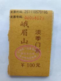 峨眉山淡季门票 背面有峨眉山导游图 票价:100元。