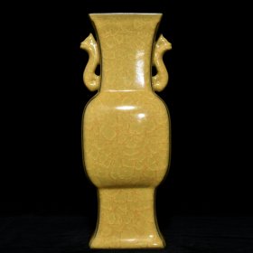 宋官瓷冰裂纹刻花鸟铭文双耳瓶