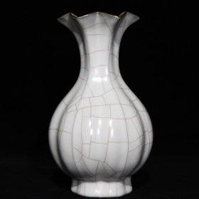 宋官瓷花口瓜棱瓶25x15厘米